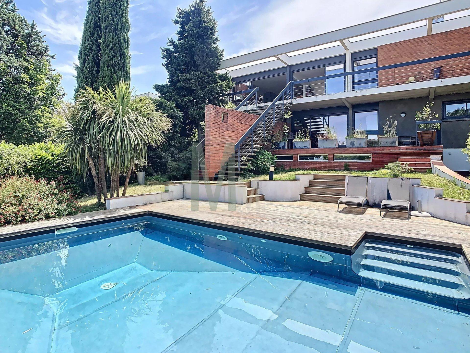 Implantée sur une parcelle intimiste denviron 900 m², elle offre un cadre de vie privilégié avec piscine chauffée au sel, terrasses et espaces de détente harmonieusement intégrés à lenvironnement.