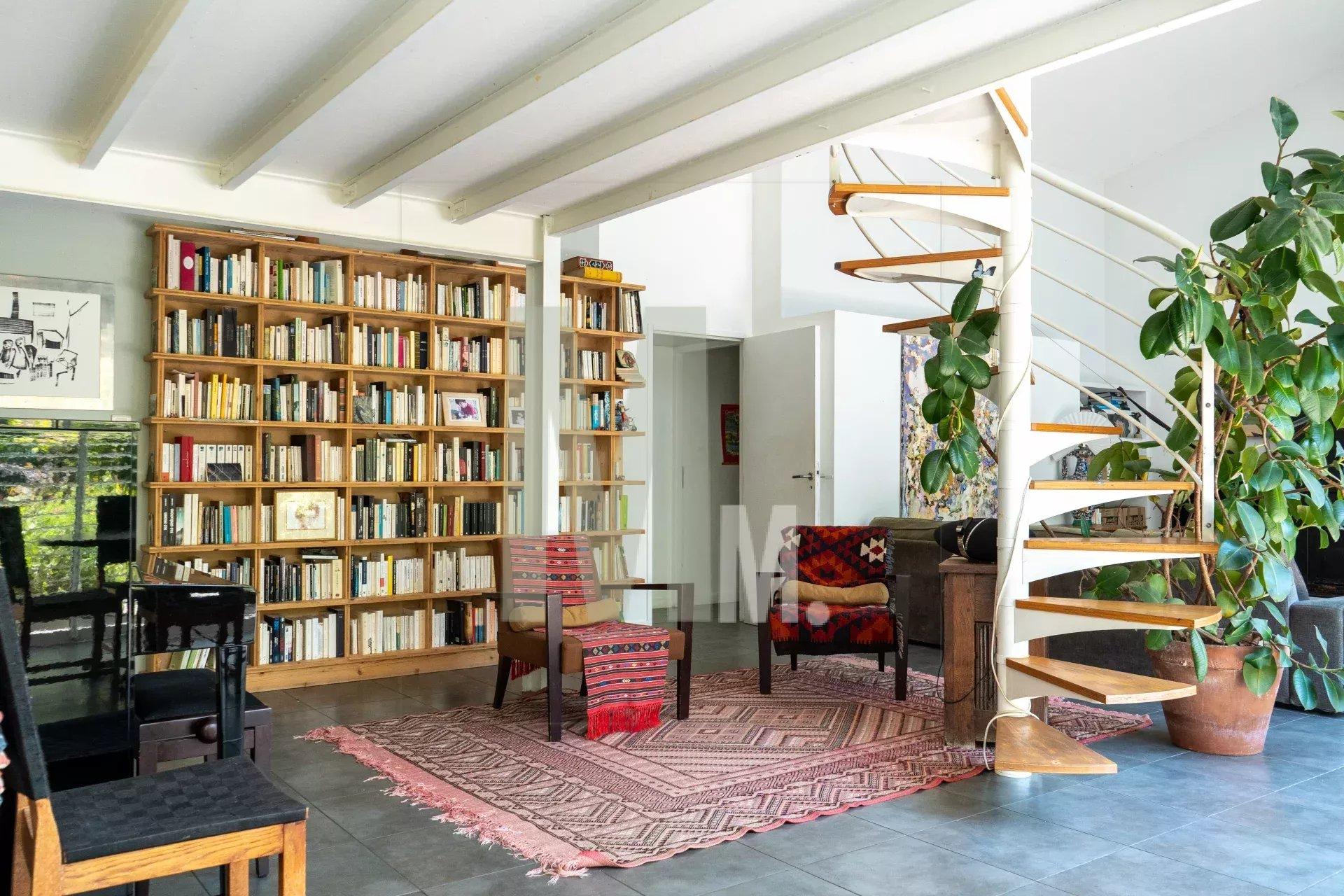 Un attribué à la maison de gardien de 25 m2 environ et un grand garage réservé à la maison principale de plus de 50 m2 avec une belle hauteur sous plafonds, permettant d'abriter 4 voitures ainsi que le matériel d'entretien des espaces verts.