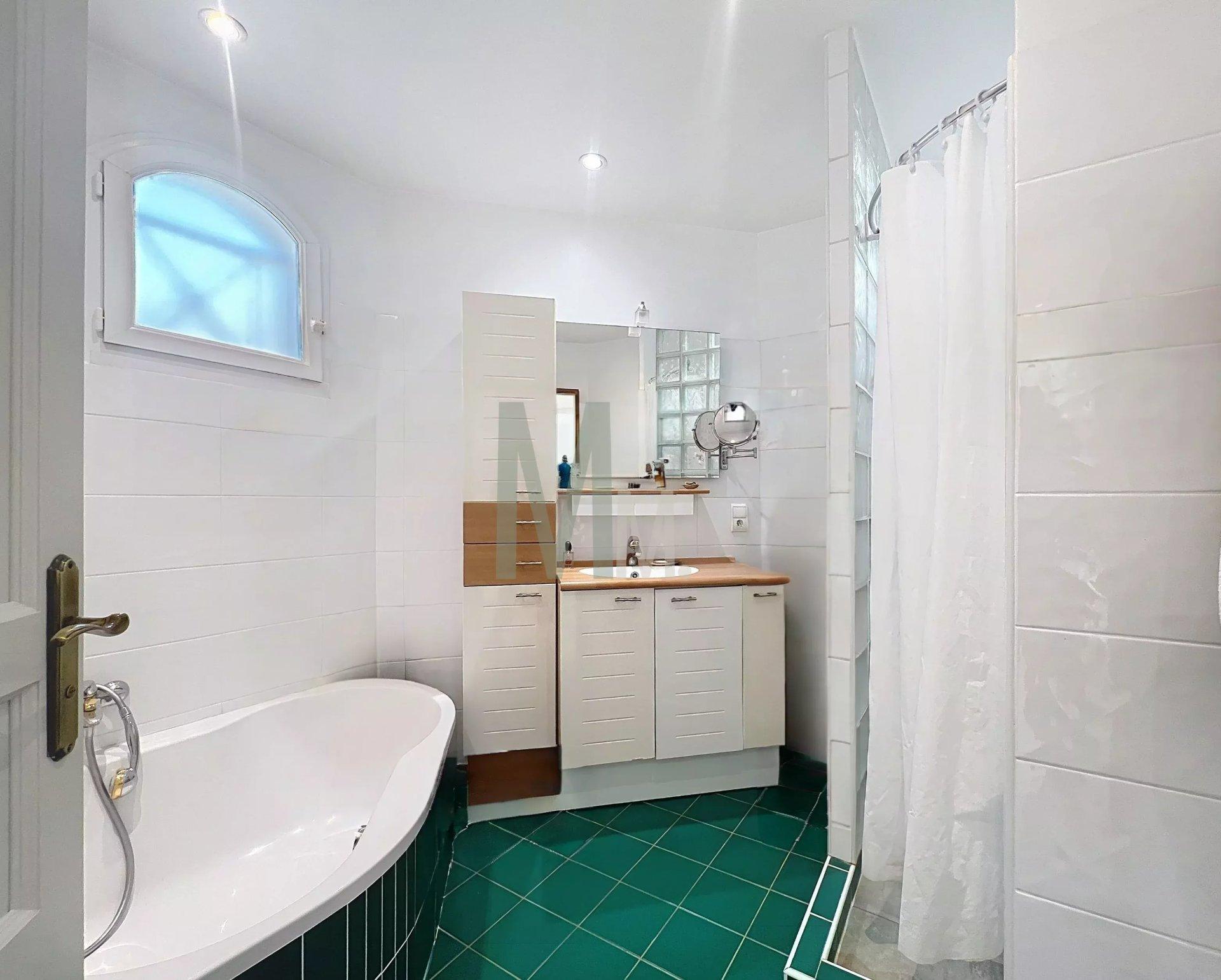 Le rez-de-jardin propose une grande chambre avec salle de douche et WC, pouvant être aménagée en studio indépendant.