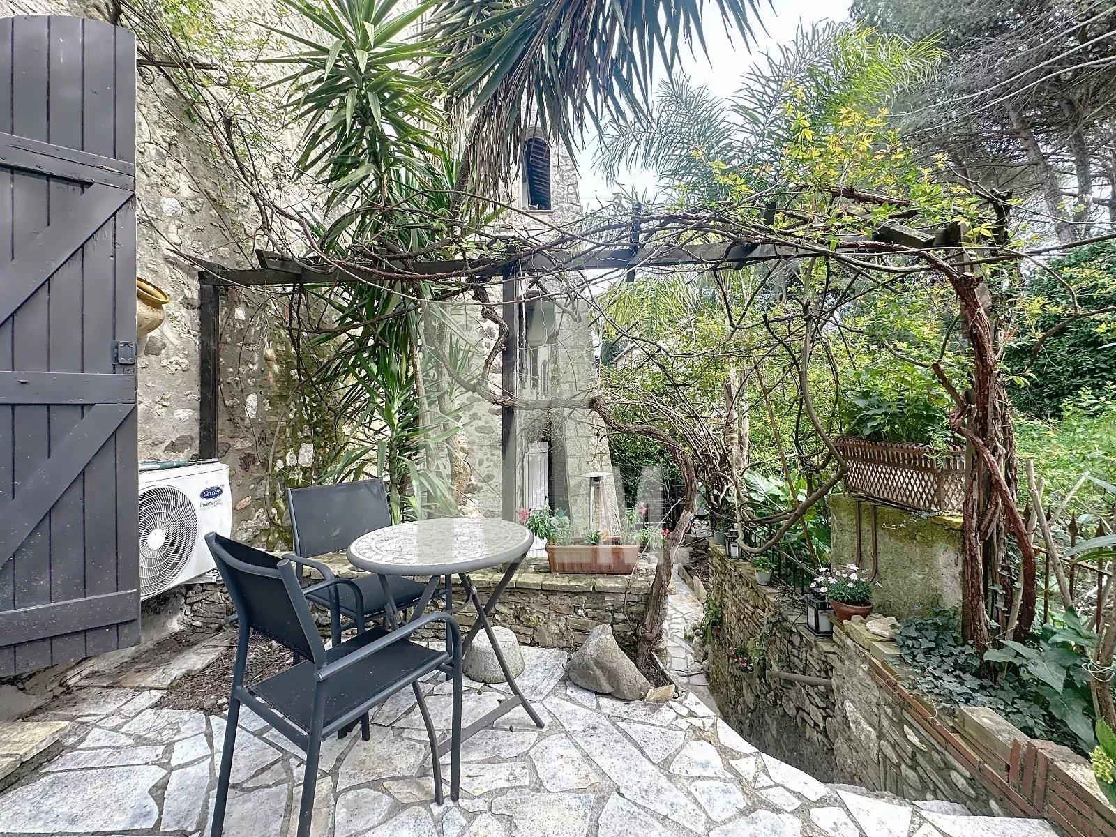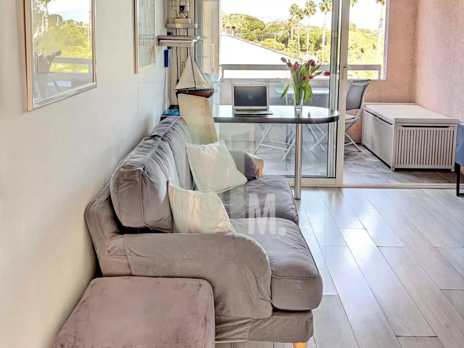 La cuisine équipée permet l'accès à un second extérieur avec une vue sur les collines cannoises.