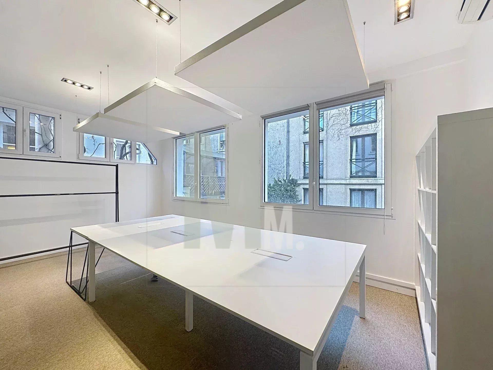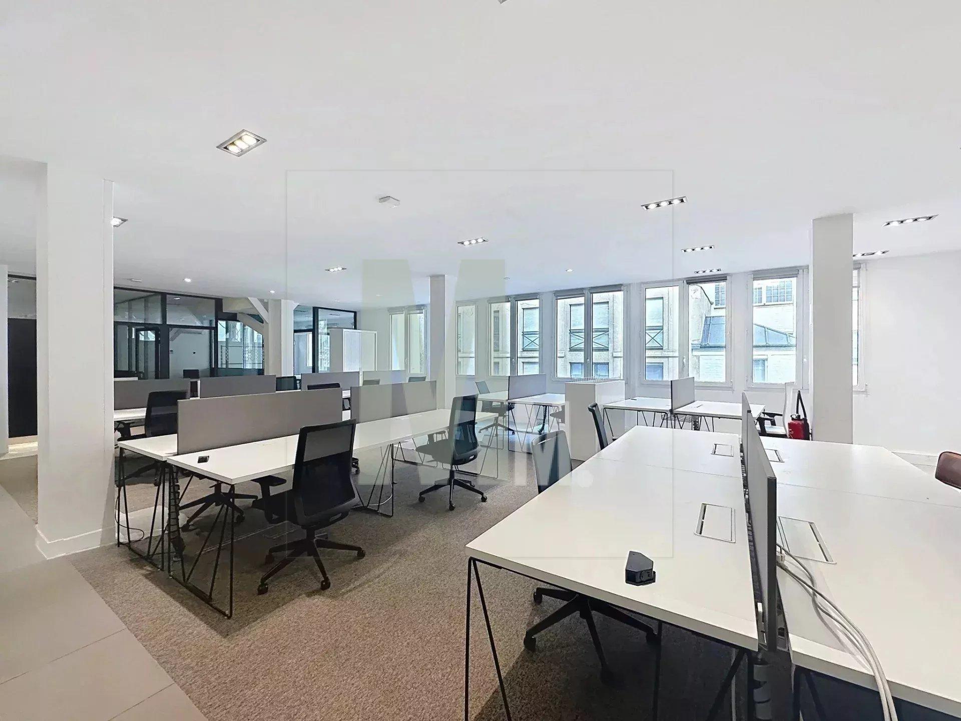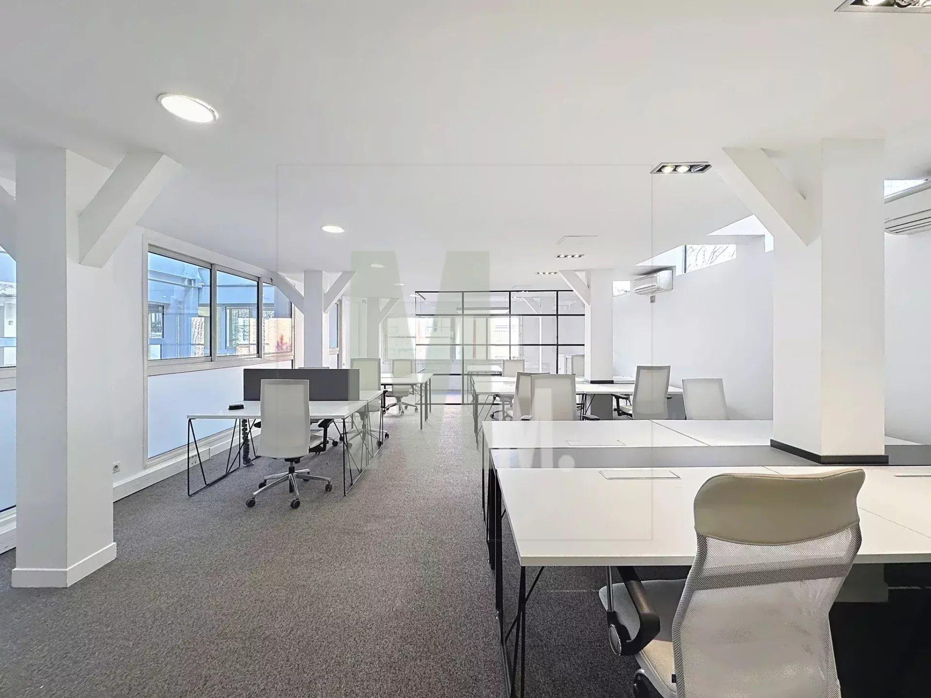 De grandes fenêtres assurent une belle luminosité, et les locaux sont équipés de la fibre optique, de la climatisation, de sanitaires privatifs et dun coin cuisine.